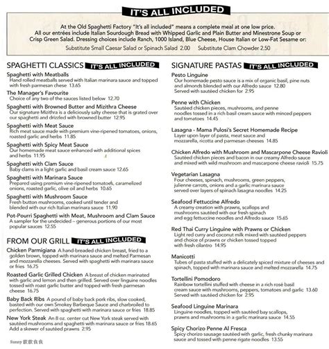 The Old Spaghetti Factory (Abbotsford) menu in Abbotsford, British from www.sirved.com